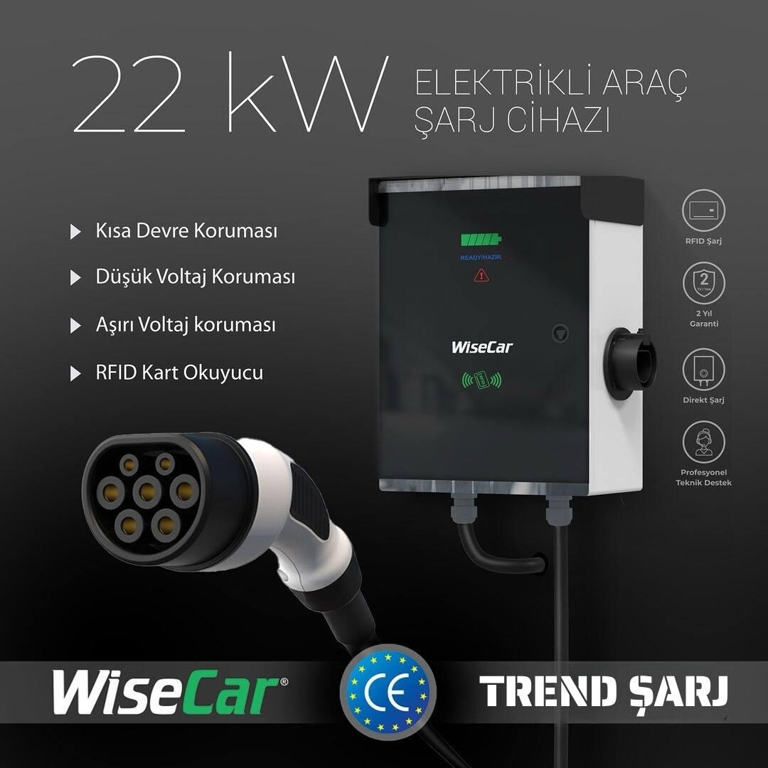 WiseCar 22KW Elektrikli Araç Şarj Ünitesi 5mt 🔌